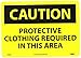 | Feature | Header "CAUTION" and legend "PROTECTIVE CLOTHING REQUIRED IN THIS AREA" |