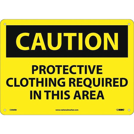 NMC C396RB OSHA Sign, Legend "CAUTION - PROTECTIVE CLOTHING REQUIRED IN THIS AREA", 14" Length x 10" Height, Rigid Plastic, Black on Yellow