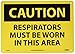 | Feature | Header "CAUTION" and legend "RESPIRATORS MUST BE WORN IN THIS AREA" |
