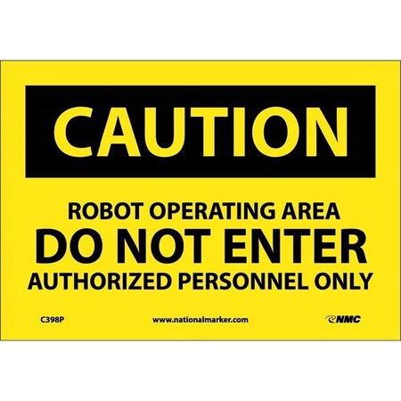 NMC C398R CAUTION - ROBOT OPERATING AREA DO NOT ENTER AUTHORIZED PERSONNEL ONLY - 10 in. x 7 in. Rigid Plastic Caution Signage, Black on Yellow