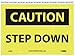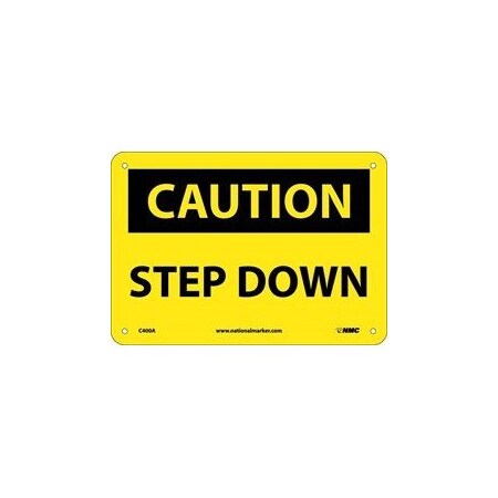 NMC C400P CAUTION - STEP DOWN Sign - 10 in. x 7 in., PS Vinyl Signage with Black Text on Yellow Base