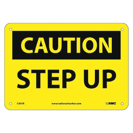 NMC C401R CAUTION - STEP UP Sign - 10 in. x 7 in., Rigid Plastic Signage with Black Text on Yellow Base
