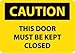 - Header "CAUTION" and legend "THIS DOOR MUST BE KEPT CLOSED"