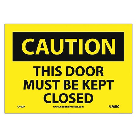 NMC C402P OSHA Sign, Legend "CAUTION - THIS DOOR MUST BE KEPT CLOSED", 10" Length x 7" Height, Pressure Sensitive Adhesive Vinyl, Black on Yellow