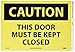 - Header "CAUTION" and legend "THIS DOOR MUST BE KEPT CLOSED"