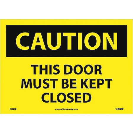 NMC C402PB OSHA Sign, Legend "CAUTION - THIS DOOR MUST BE KEPT CLOSED", 14" Length x 10" Height, Pressure Sensitive Adhesive Vinyl, Black on Yellow