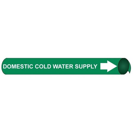 NMC C4036 "Domestic Cold Water Supply" Precoiled Pipe Marker, Fits 2 1/2"-3 1/4" Pipe, White/Green