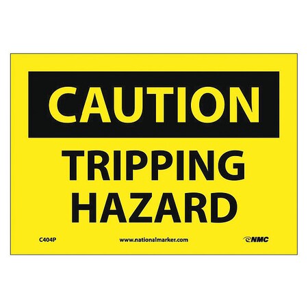 NMC C404P OSHA Sign, Legend "CAUTION - TRIPPING HAZARD", 10" Length x 7" Height, Pressure Sensitive Adhesive Vinyl, Black on Yellow