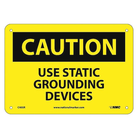 NMC C405R OSHA Sign, Legend "CAUTION - USE STATIC GROUNDING DEVICES", 10" Length x 7" Height, Rigid Plastic, Black on Yellow