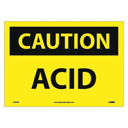 NMC C409PB OSHA Sign, Legend "CAUTION - ACID", 14" Length x 10" Height, Pressure Sensitive Adhesive Vinyl, Black on Yellow