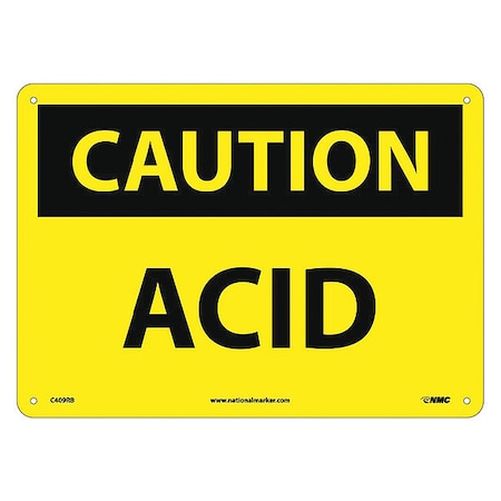 NMC C409RB OSHA Sign, Legend "CAUTION - ACID", 14" Length x 10" Height, Rigid Plastic, Black on Yellow