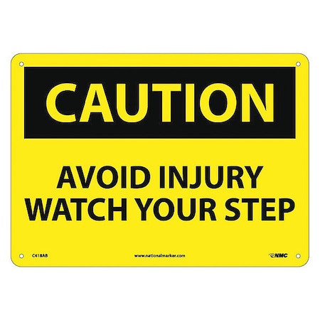 NMC C418AB OSHA Sign, Legend "CAUTION - AVOID INJURY WATCH YOUR STEP", 14" Length x 10" Height, Aluminum, Black on Yellow