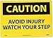 | Feature | Header "CAUTION" and legend "AVOID INJURY WATCH YOUR STEP" |