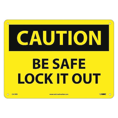NMC C419RB OSHA Sign, Legend "CAUTION - BE SAFE LOCK IT OUT", 14" Length x 10" Height, Rigid Plastic, Black on Yellow