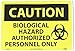 | Feature | Header "CAUTION" and legend "BIOLOGICAL HAZARD AUTHORIZED PERSONNEL ONLY" with Graphic |