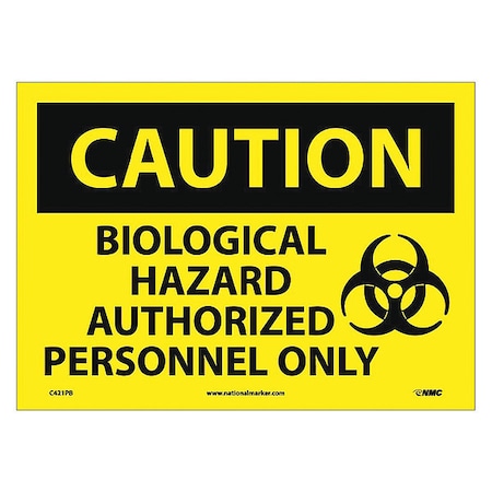 NMC C421PB OSHA Sign, Legend "CAUTION - BIOLOGICAL HAZARD AUTHORIZED PERSONNEL ONLY" with Graphic, 14" Length x 10" Height, Pressure Sensitive Adhesive Vinyl, Black on Yellow