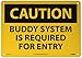 - Caution Signage: the buddy system caution sign is mostly seen in security sensitive zones. The sign informs visitors or employees that buddy system is required for entry in a specific area