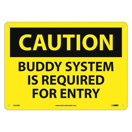 NMC C424AB OSHA Sign, Legend "CAUTION - BUDDY SYSTEM IS REQUIRED FOR ENTRY", 14" Length x 10" Height, Aluminum, Black on Yellow
