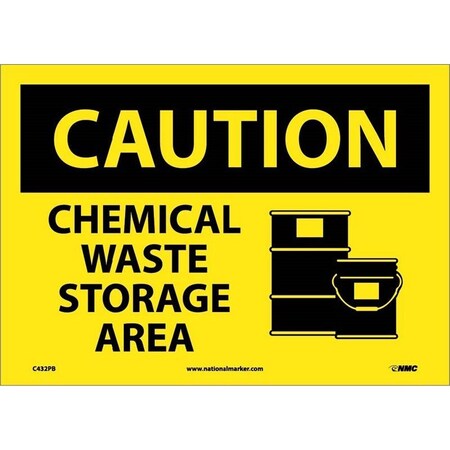 NMC C432PB OSHA Sign, Legend "CAUTION - CHEMICAL WASTE STORAGE AREA" with Graphic, 14" Length x 10" Height, Pressure Sensitive Adhesive Vinyl, Black on Yellow