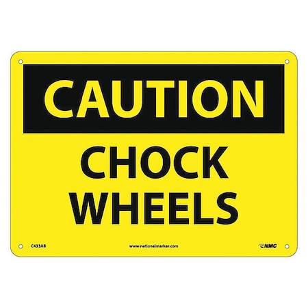 NMC C433AB OSHA Sign, Legend "CAUTION - CHOCK WHEELS", 14" Length x 10" Height, Aluminum, Black on Yellow
