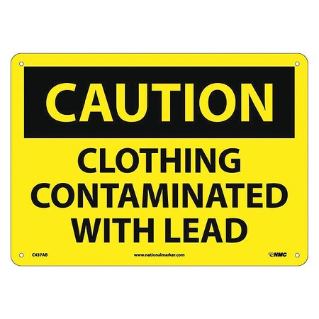 NMC C437AB OSHA Sign, Legend "CAUTION - CLOTHING CONTAMINATED WITH LEAD", 14" Length x 10" Height, Aluminum, Black on Yellow