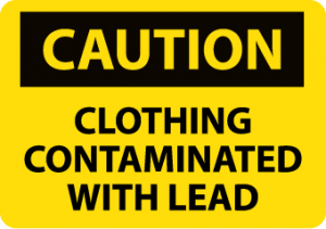 - Header "CAUTION" and legend "CLOTHING CONTAMINATED WITH LEAD"