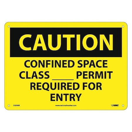 NMC C439AB OSHA Sign, Legend "CAUTION - CONFINED SPACE CLASS__PERMIT REQUIRED FOR ENTRY", 14" Length x 10" Height, Aluminum, Black on Yellow
