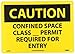 - Header "CAUTION" and legend "CONFINED SPACE CLASS__PERMIT REQUIRED FOR ENTRY"