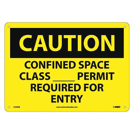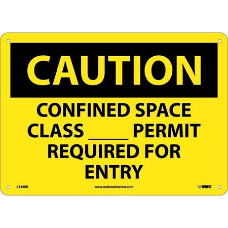 NMC C439RB OSHA Sign, Legend "CAUTION - CONFINED SPACE CLASS__PERMIT REQUIRED FOR ENTRY", 14" Length x 10" Height, Rigid Plastic, Black on Yellow