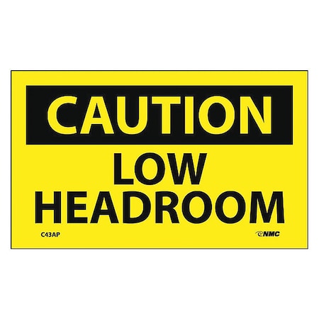 NMC C43AP OSHA Sign, Legend "CAUTION - LOW HEADROOM", 5" Length x 3" Height, Pressure Sensitive Adhesive Vinyl, Black on Yellow (Pack of 5)