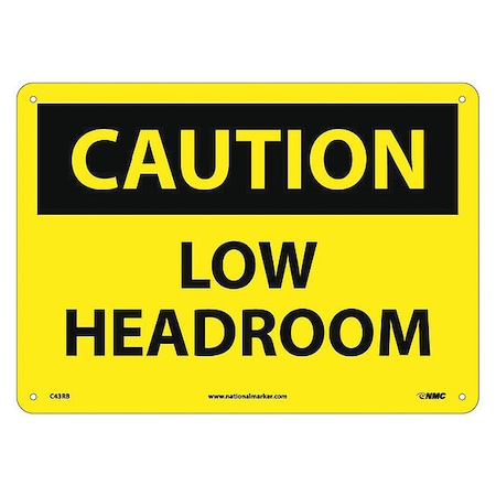 NMC C43RB OSHA Sign, Legend "CAUTION - LOW HEADROOM", 14" Length x 10" Height, Rigid Plastic, Black on Yellow