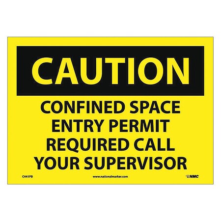 NMC C441PB OSHA Sign, Legend "CAUTION - CONFINED SPACE ENTRY PERMIT REQUIRED CALL YOUR SUPERVISOR", 14" Length x 10" Height, Pressure Sensitive Adhesive Vinyl, Black on Yellow