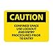 | Feature | Header "CAUTION" and legend "CONFINED SPACE USE LOCKOUT AND ENTRY PROCEDURES PRIOR TO ENTRY" |