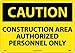 | Feature | Header "CAUTION" and legend "CONSTRUCTION AREA AUTHORIZED PERSONNEL ONLY" |