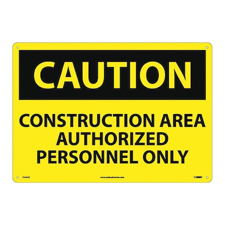 NMC C445AC OSHA Sign, Legend "CAUTION - CONSTRUCTION AREA AUTHORIZED PERSONNEL ONLY", 20" Length x 14" Height, Aluminum, Black on Yellow