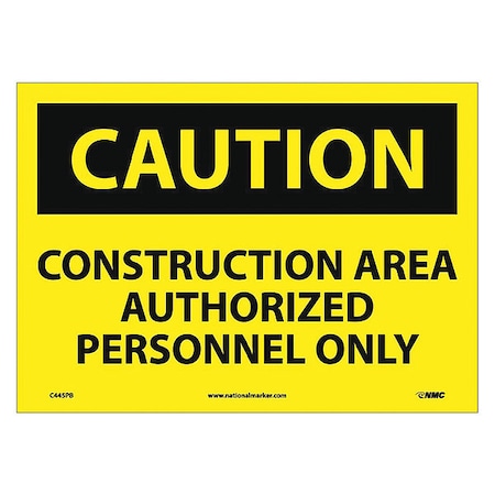NMC C445PB OSHA Sign, Legend "CAUTION - CONSTRUCTION AREA AUTHORIZED PERSONNEL ONLY", 14" Length x 10" Height, Pressure Sensitive Adhesive Vinyl, Black on Yellow