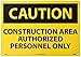 | Feature | Header "CAUTION" and legend "CONSTRUCTION AREA AUTHORIZED PERSONNEL ONLY" |