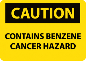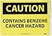 - Header "CAUTION" and legend "CONTAINS BENZENE CANCER HAZARD"