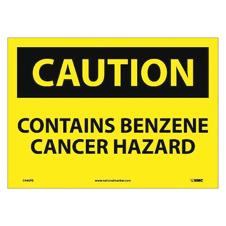 NMC C446PB OSHA Sign, Legend "CAUTION - CONTAINS BENZENE CANCER HAZARD", 14" Length x 10" Height, Pressure Sensitive Adhesive Vinyl, Black on Yellow
