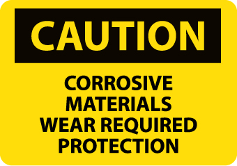 | Feature | Header "CAUTION" and legend "CORROSIVE MATERIALS WEAR REQUIRED PROTECTION" |