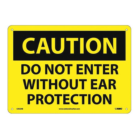 NMC C455AB OSHA Sign, Legend "CAUTION - DO NOT ENTER WITHOUT EAR PROTECTION", 14" Length x 10" Height, Aluminum, Black on Yellow