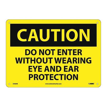NMC C456AB OSHA Sign, Legend "CAUTION - DO NOT ENTER WITHOUT WEARING EYE AND EAR PROTECTION", 14" Length x 10" Height, Aluminum, Black on Yellow