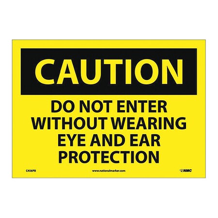 NMC C456PB OSHA Sign, Legend "CAUTION - DO NOT ENTER WITHOUT WEARING EYE AND EAR PROTECTION", 14" Length x 10" Height, Pressure Sensitive Adhesive Vinyl, Black on Yellow