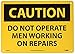 | Feature | Header "CAUTION" and legend "DO NOT OPERATE MEN WORKING ON REPAIRS" |