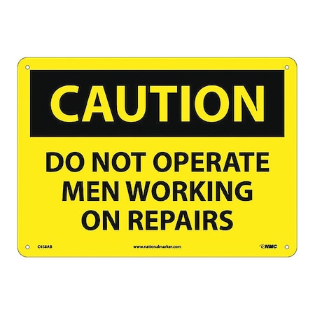 NMC C458AB OSHA Sign, Legend "CAUTION - DO NOT OPERATE MEN WORKING ON REPAIRS", 14" Length x 10" Height, Aluminum, Black on Yellow