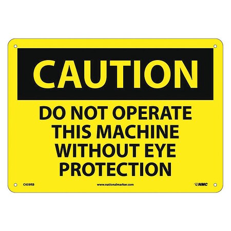 NMC C459RB OSHA Sign, Legend "CAUTION - DO NOT OPERATE THIS MACHINE WITHOUT EYE PROTECTION", 14" Length x 10" Height, Rigid Plastic, Black on Yellow