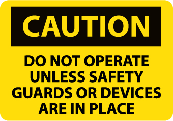 | Feature | Header "CAUTION" and legend "DO NOT OPERATE UNLESS SAFETY GUARDS OR DEVICES ARE IN PLACE" |
