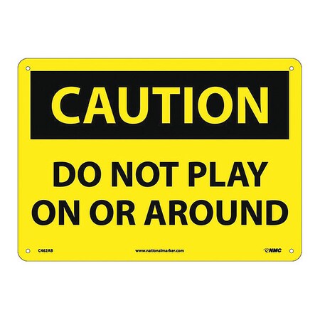 NMC C462AB OSHA Sign, Legend "CAUTION - DO NOT PLAY ON OR AROUND", 14" Length x 10" Height, Aluminum, Black on Yellow