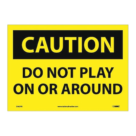NMC C462PB OSHA Sign, Legend "CAUTION - DO NOT PLAY ON OR AROUND", 14" Length x 10" Height, Pressure Sensitive Adhesive Vinyl, Black on Yellow