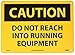 - Header "CAUTION" and legend "DO NOT REACH INTO RUNNING EQUIPMENT"